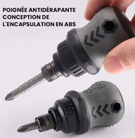 Confortable et léger : Le tournevis à cliquet a une poignée rainurée qui s'adapte facilement à votre main pour un couple et une puissance maximum. Il est suffisamment petit pour se glisser dans les tiroirs de cuisine, les boîtes à gants, les sacs à outils et les boîtes à outils de toutes tailles. Il peut même tenir dans votre poche.