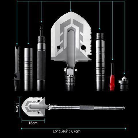 - Matière: Tête de pelle: Acier au manganèse Manche: Alliage d'aluminium Couteau tactique: Acier inoxydable 440