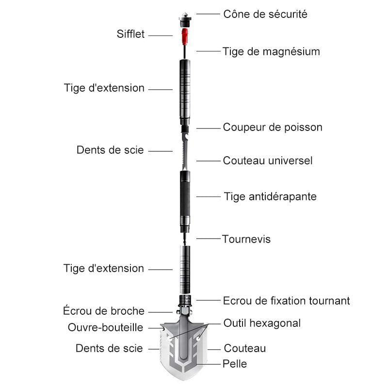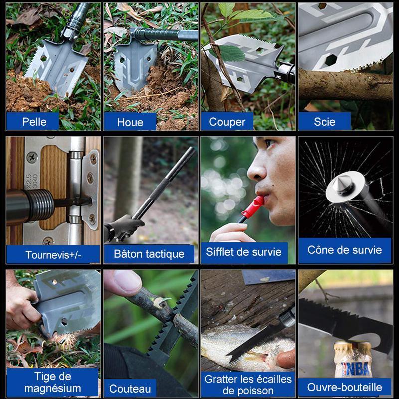 - 1 x pelle pliante militaire portable avec sac de taille tactique et outils multiples
